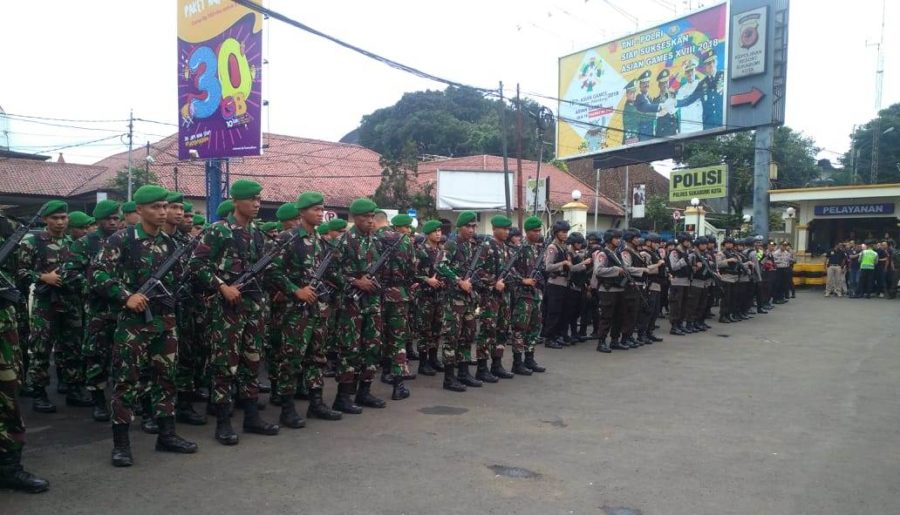Apel siaga pasukan digelar di Mako Polres Sukabumi Kota, Selasa (26/6/2018). Personel gabungan pengamanan terdiri dari Polres Sukabumi Kota dibantu kekuatan Brimob Polda Jabar, unsur TNI dari berbagai batalyon, Kodim 0607/Kota Sukabumi, dan elemen lainnya.