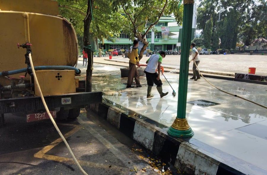 Kepala Bidang Kawasan Pemukiman Dinas Perkimsih Kabupaten Sukabumi, Agus Sofyan, mengatakan aksi bersih-bersih kawasan alun-alun menggunakan semprotan air dari mobil tangki itu tujuannya untuk menghilangkan debu dan kotoran yang menempel di trotoar dan sarana lainnya.