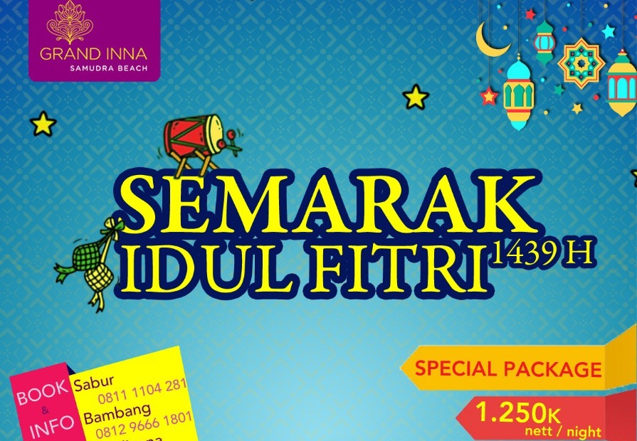 Tak ingin ketinggalan momen, Grand Inna Samudra Beach Hotel Palabuhanratu bersiap menyambut musim libur Lebaran 2018. Hotel plat merah ini menyiapkan promo khusus libur Lebaran bagi wisatawan yang akan menginap dengan harga kompetitif Rp1.250.000 nett per malam sudah termasuk sarapan dan makan malam.