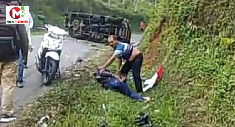 CIANJUR | MAGNETINDONESIA.CO – Angkutan umum jenis elf jurusan Cianjur-Cidaun sarat penumpang terlibat kecelakaan di tanjakan Cijatem Desa Sukajadi, Kecamatan Sukanagara, Kabupaten Cianjur, Selasa (31/7/2018) siang. Akibat kejadian itu, lima orang mengalami luka berat.