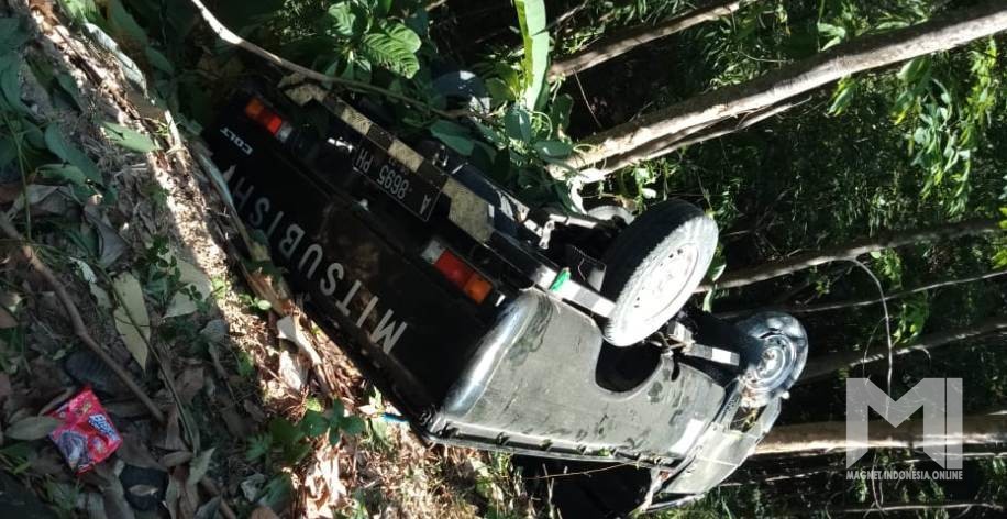 BANTEN | MAGNETINDONESIA.CO – Mobil Mitshubishi L300 bernomor polisi A 8695 PH sarat penumpang terjun ke jurang di Jalan Raya Bayah-Cibareno Gunungbelah, Desa Cireundeu, Kecamatan Cilograng, Kabupaten Lebak, Banten, Senin (3/9/2018). Akibat kejadian itu, satu orang penumpang meninggal dunia dan lainnya mengalami luka berat dan ringan.