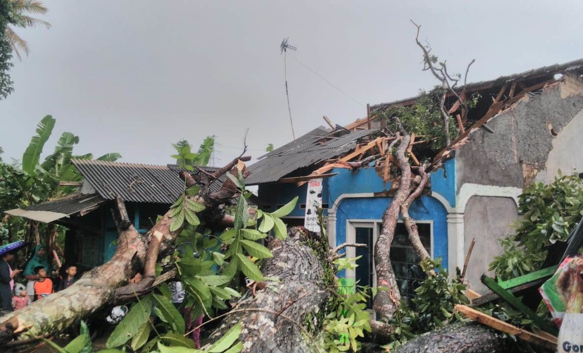 Sejumlah pohon tumbang. Paling parah terjadi di Kampung Cirangkong RT 28/07. Pasalnya, rumah milik Hani Heniawati (48) tertimpa pohon mahoni hingga rusak berat.