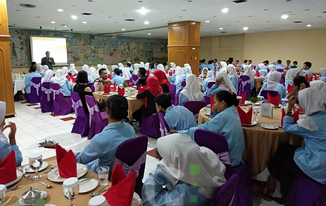 SUKABUMI | MAGNETINDONESIA.CO – Grand Inna Samudra Beach Hotel Palabuhanratu, Kabupaten Sukabumi, jadi tempat dilaksanakannya praktik table manner dari ratusan pelajar SMK Pariwisata Citayam, Kota Depok, Selasa (19/2/2019) malam. Kegiatan itu diikuti sebanyak 103 pelajar. Mereka juga diajak berkeliling mengenali suasana hotel plat merah tersebut.