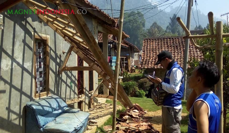 Hal sama dilakukan Satgas BPBD Wilayah Cisolok Andri Firmansyah. Salah satu rumah warga mengalami kerusakan pada bagian dinding dan lantai yang retak.