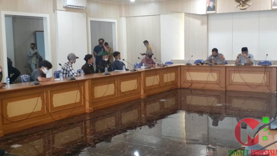 SUKABUMI | MAGNETINDONESIA.CO – Sejumlah mahasiswa di Kabupaten Sukabumi beraudiensi dengan para wakil rakyat di Gedung DPRD Kabupaten Sukabumi, Senin (28/9/2020). Mereka yang tergabung dalam Himpunan Mahasiswa Islam (HMI) Palabuhanratu menyuarakan kegundahan masyarakat terhadap berbagai persoalan di wilayah terluas kedua se-Jawa dan Bali itu.
