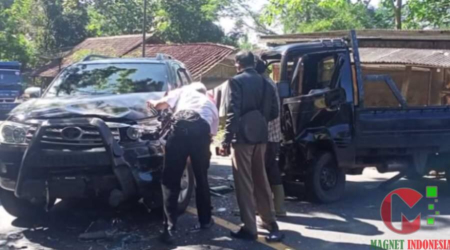 SUKABUMI | MAGNETINDONESIA.CO – Ruas Jalan Linggamanik, Desa/Kecamatan Bantargadung, Kabupaten Sukabumi, jadi saksi atas insiden ‘adu bagong’ antara Toyota Fortuner versus Pikap Carry yang terjadi Kamis (15/4/2021) sekitar pukul 10.00 WIB. Kedua kendaraan itu terlibat tabrakan di jalan tikungan dan berlawanan arah.
